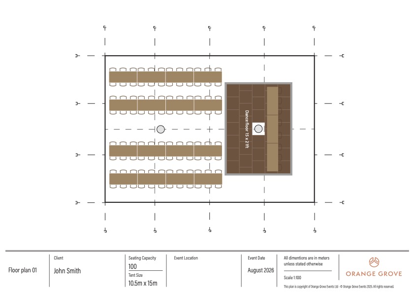 We also provide detailed CAD drawings of our stretch tents, with your chosen furniture, giving a helpful visual insight into the space available and used.